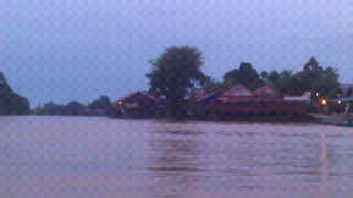 We have had 4 hard days of travel but finally made it to Si Phan Don, otherwise known as 4000 islands, (though I think 2000 of them are under water at present.) Lao transport works as long as you are in no hurry to be anywhere. The timetable is flexible, the arrival times vary considerably, you may be on a bus, a tuk-tuk or as in the photo where we r changing from the tuk-tuk, a sorngtaaou, that's a truck with hard seats in the back, we did about 150 km in those one day, 3 different ones that link smaller routes. In one it was bucketing down with rain, we were soaked. From Vientiane we went to the kong lo cave, just amazing. Photo of small entrance way across the river. Once inside in a small motorised long boat it goes for 7.5km. Enormous inside and awesome stalactites and stalacmites, some photos included but was quite dark inside so may not be the best. It goes right through to another village. They bring coffee through the cave on boats in the season. The water was really high, much higher and we would not have been able to go through. A bit scary hooning through a cave in the dark with one guy at the front shining a torch and driver at the back. Our young driver made a couple of mistakes which kept me on high alert hoping I wasn't going to be floating down a fast flowing river in the dark! The places on the way down here were very uninspiring and not very nice places to stay so we kept traveling each day. All the seats were full in one bus and sacks of rice all down the aisle, then they put small stools on top of the sacks and people sat on them. Hot and tiring and you can't get out, food is sold through the windows. Crickets, chicken, rice, eggs... But now we are relaxing for 4-5 days, reading books and laying in a hammock, time out. These islands are between Laos & Cambodia on the Mekong. Boats cannot come up river to here because there are 5 wide waterfalls blocking the way. We are on the island of Don Khon in a lovely bungalow on the water edge. We cycled round and checked out 2 waterfalls, other parts of the island are very primitive. Very cheap in Laos, we can get our washing done for 10000 kip ( $1.50) One day I withdrew 3 million kip from the ATM about $450, takes ages to get through that. Cambodia next, when we can face another bus...