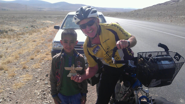 Back on the highway and about the 100 km mark we stopped where there was supposed to be a hotel. Yes a closed one! Just as we were contemplating our next move a car pulled up, Hamed, who ran a travel agency and whose parents lived just 15 km further on. He called them and it was quickly arranged that we would stay with them. What a fun time we had with this lovely family. Made to feel so welcome. There seemed to be a never ending supply of food to eat, a late lunch when we got there, cups of tea, plates of fruit and dates. Hamed's sister and daughter lived there as well and his other sister and children came for dinner. The kids were great fun (photo) and I was pleased to be able to pass on the gifts the Japanese ladies had given me a couple of days back!